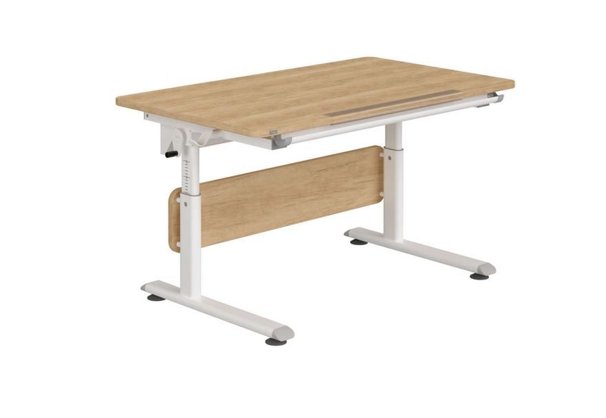 Der PAIDI Schreibtisch Diego, aus einer Platte in Eiche Nebraska und einem dazu passenden Metallgestell in weiß, passt besonders gut ins Kinderzimmer. Er lässt sich auch mit einem Rollcontainer oder einem Schreibtischstuhl kombinieren.