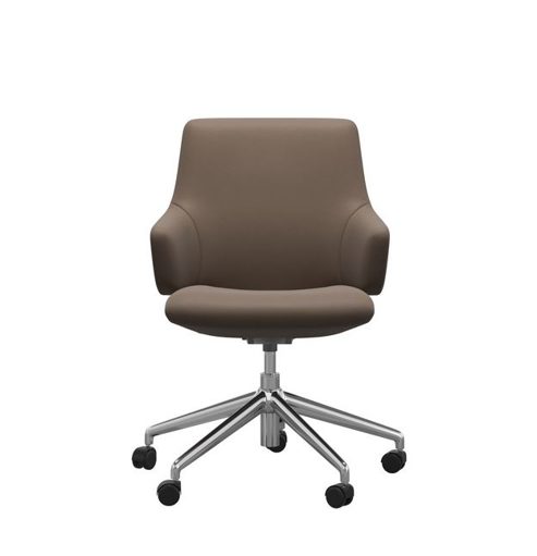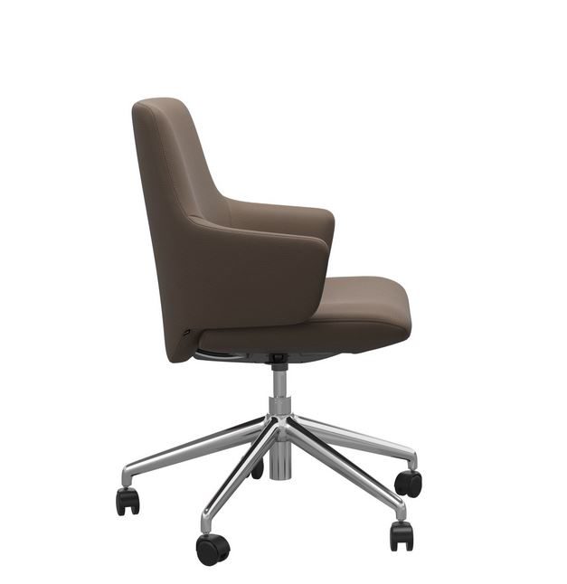 Die Abbildung zeigt den Home Office Sessel Laurel mit niedrigen Rücken in Leder Batick Mole mit dem gestell in Chrom.