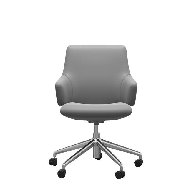 Die Abbildung zeigt den Home Office Sessel Laurel mit niedrigen Rücken in Leder Batick Wild Dove mit dem gestell in Chrom.