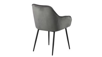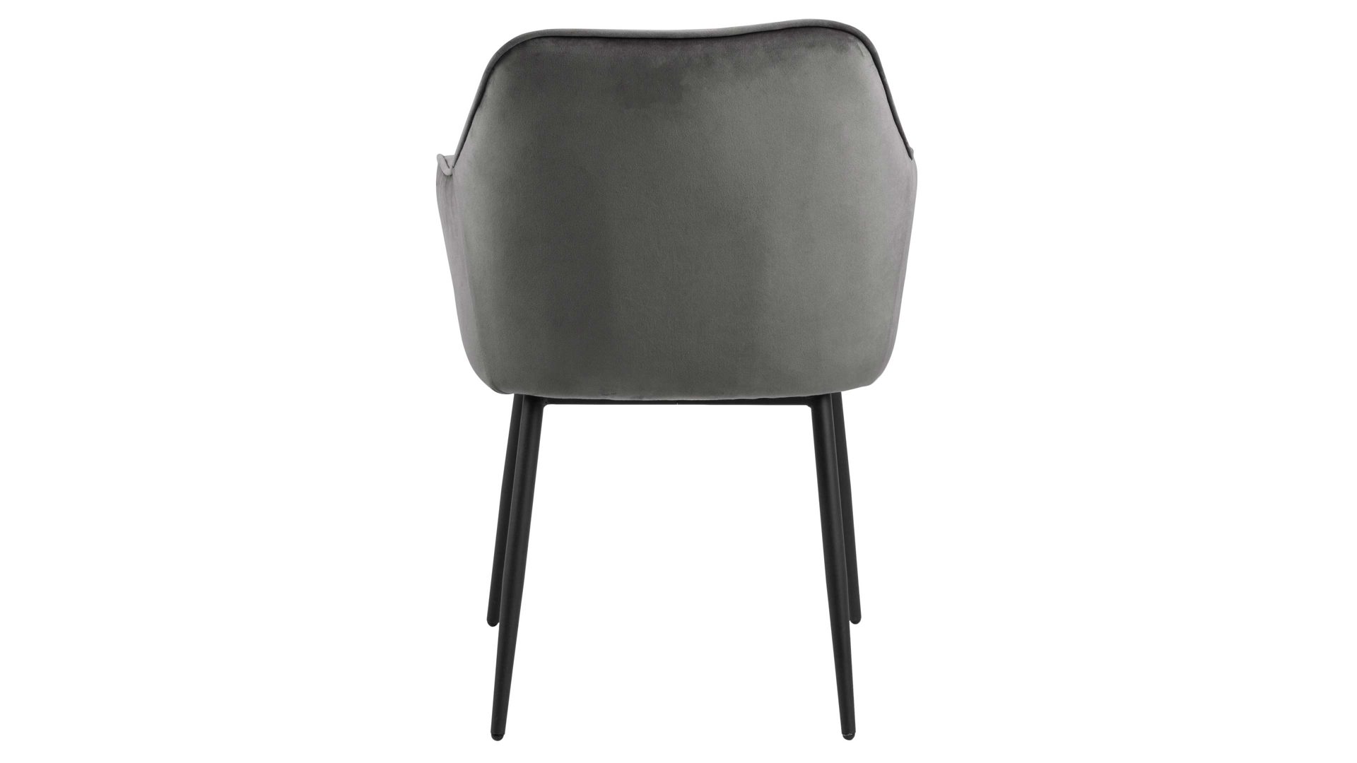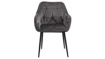 Dabei harmoniert der Polsterstuhl in seiner sanften Formensprache mit zahlreichen Einrichtungsstilen. Moderne Geradlinigkeit ergänzt er ebenso stimmig wie den beliebten Vintage-Trend. Auch farblich erlaubt der Esszimmerstuhl Brooke angenehme Freiheit beim Kombinieren: Dafür sorgt der dunkelgraue Bezug aus Samt, der die gesamte Sitzschale inklusive der bequemen Armlehnen weich umhüllt. Die rau pulverbeschichteten Metallfüße fließen in mattem Schwarz stimmig in das Gesamtbild ein.