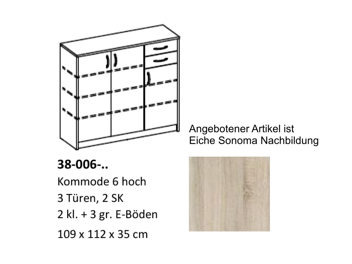 Kombikommode Hoch, B-H-T ca. 109 x 112 x 35 cm, drei Türen, zwei Schubkästen