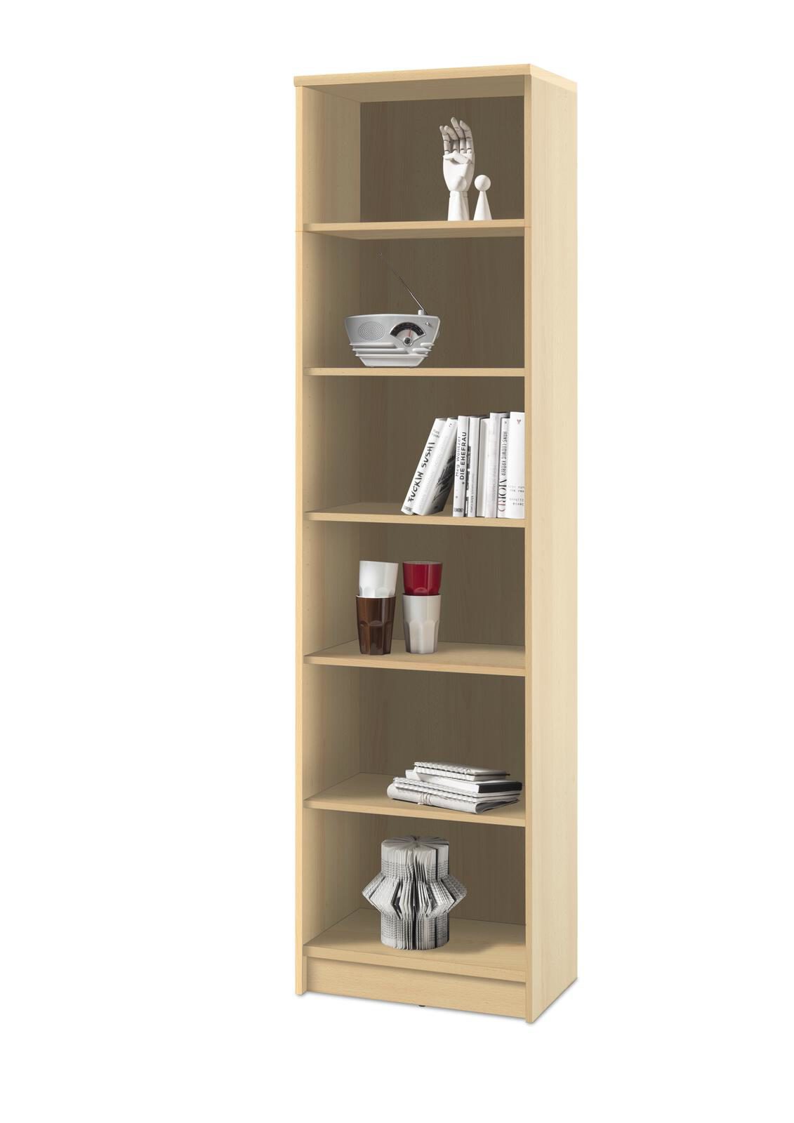 Dieses schmale Bücherregal mit seinen fünf Einlegeböden ist der absolute Klassiker. Edel und elegant mit pflegeleichter Kunststoffoberfläche passt das Wohnzimmermöbel perfekt zu zahlreichen Einrichtungsstilen.
