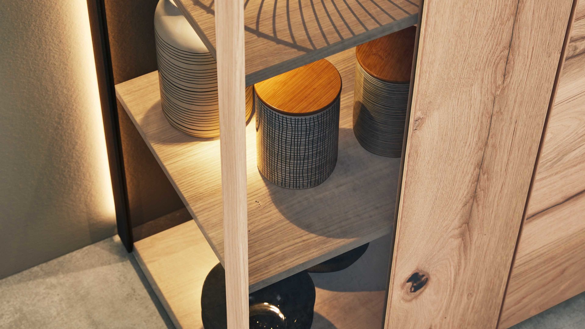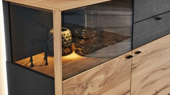 Das LED-Beleuchtungs-Set V791-0001 ist ein Mehrpreis-Zubehör für Fachböden der Möbel aus der Interliving Esszimmer Serie 5604.