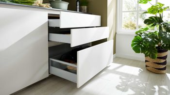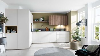 Bei der WERT KÜCHE® Franziska handelt es sich um ein individuell planbares Küchenprogramm Made in Germany. Optional ist sie mit einem Geschirrspüler und einer Armatur erweiterbar.