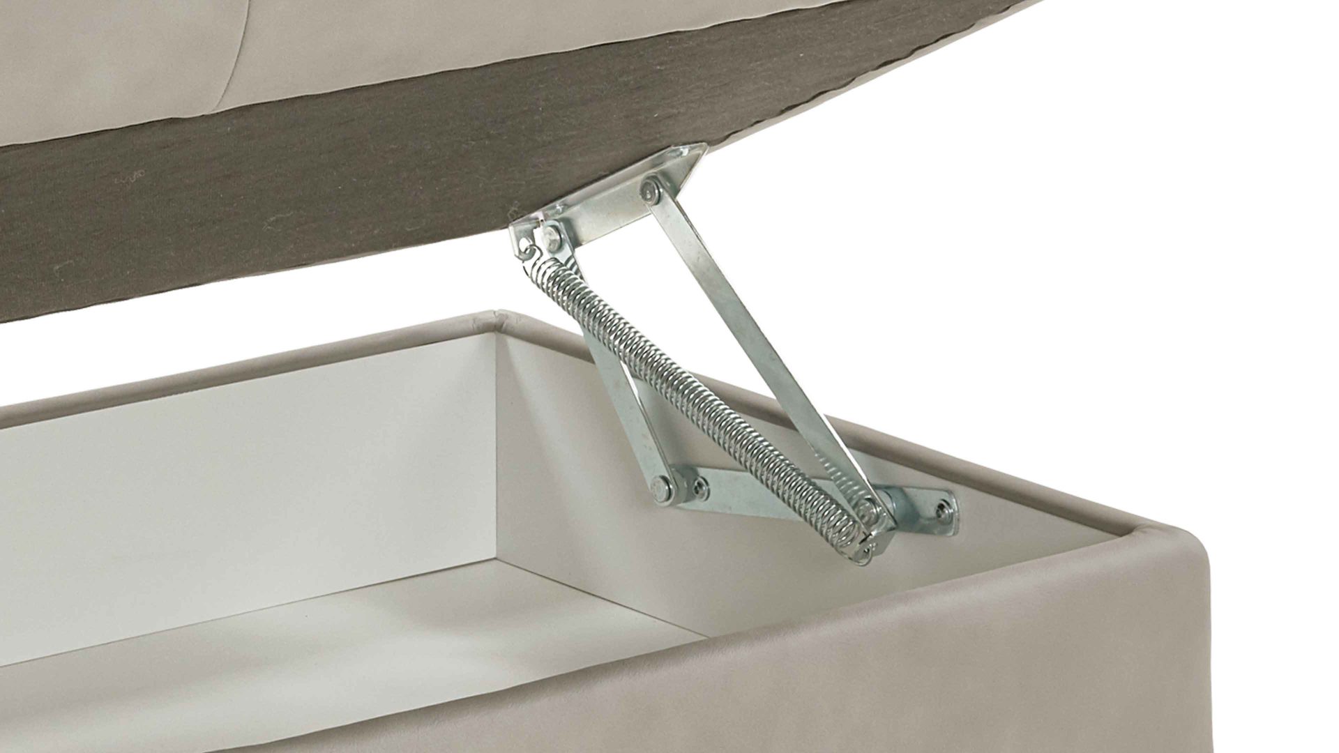 Die manuelle Aufklappfunktion geht mit praktischem, innen weiß beschichteten und belüfteten Stauraum für Wohntextilien, Spielzeug und andere Gegenstände einher.