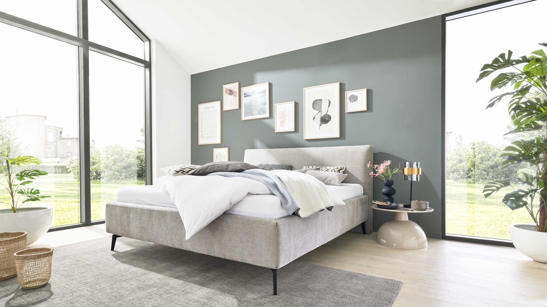 • Die Abbildung zeigt ein Wohnbeispiel, welches auch Dekoration sowie separat erhältliches Zubehör enthält. Im Lieferumfang enthalten ist ein Polsterbettgestell.