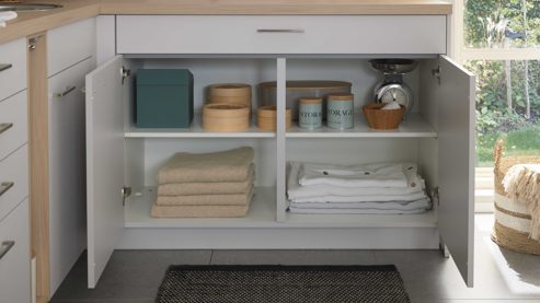 Der Culineo® Hauswirtschaftsraum C615 ist frei planbar und lässt sich individuell anpassen – zum Beispiel mit zusätzlicher Innenausstattung, einer hochwertigen Armatur oder passenden Einbaugeräten. Produziert wird er in Deutschland, sodass du auf Qualität und Langlebigkeit vertrauen kannst.