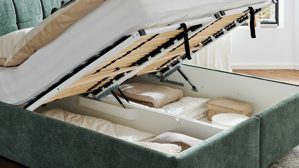 Dank Gasdruckfeder lassen sich die Fußteile der Lattenrostrahmen mühelos anheben, sodass du jederzeit komfortabel auf den Stauraum zugreifen kannst. Die gelochte Bodenplatte sorgt dabei für eine optimale Luftzirkulation, damit deine Textilien bestens geschützt bleiben.