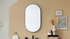 Der Badezimmerspiegel (7771) aus der Interliving Bad Serie 3702 verbindet modernes Design mit cleverer Funktionalität. Der ovale Spiegel mit edlem Rahmen aus mattschwarzem Metall wird zum stilvollen Highlight in deinem Bad – perfekt, um deine Badmöbel elegant zu ergänzen und deinem Raum das gewisse Etwas zu verleihen.