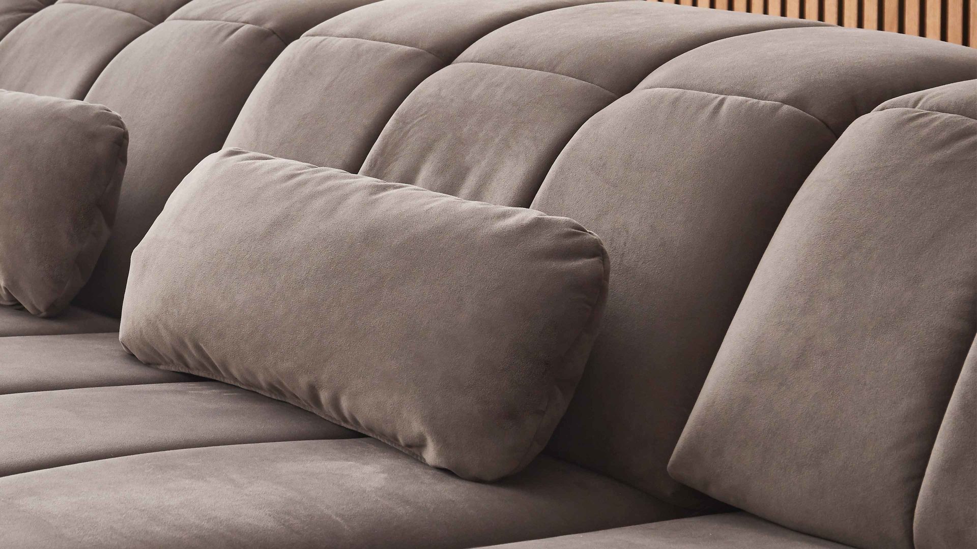 grauer Stoffbezug in Samtoptik