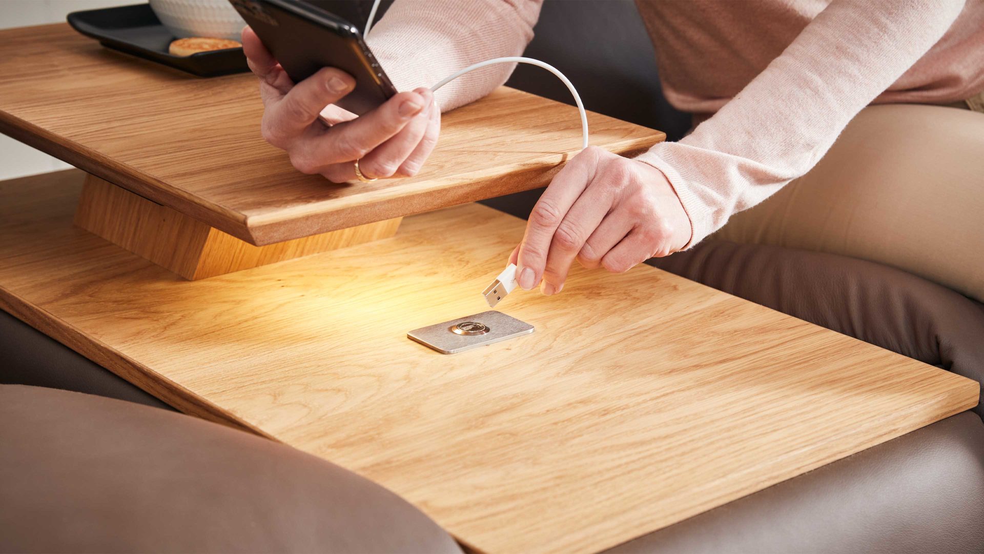 mit beleuchtetem Wildeiche-Zwischentisch inklusive praktischem USB-Anschluss
