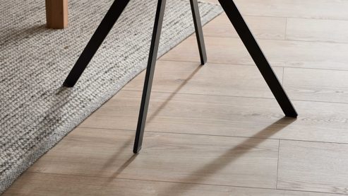 Auch bei den Tischvarianten genießt du volle Gestaltungsfreiheit: vom klassischen 4-Fuß-Tisch über einen skandinavisch inspirierten Design-Tisch mit schwarzem Gestell bis hin zum runden Esstisch mit praktischer Auszugsfunktion. Die Holzplatten sind in drei attraktiven Farbausführungen erhältlich und lassen sich perfekt mit deinem Stuhlprogramm kombinieren.