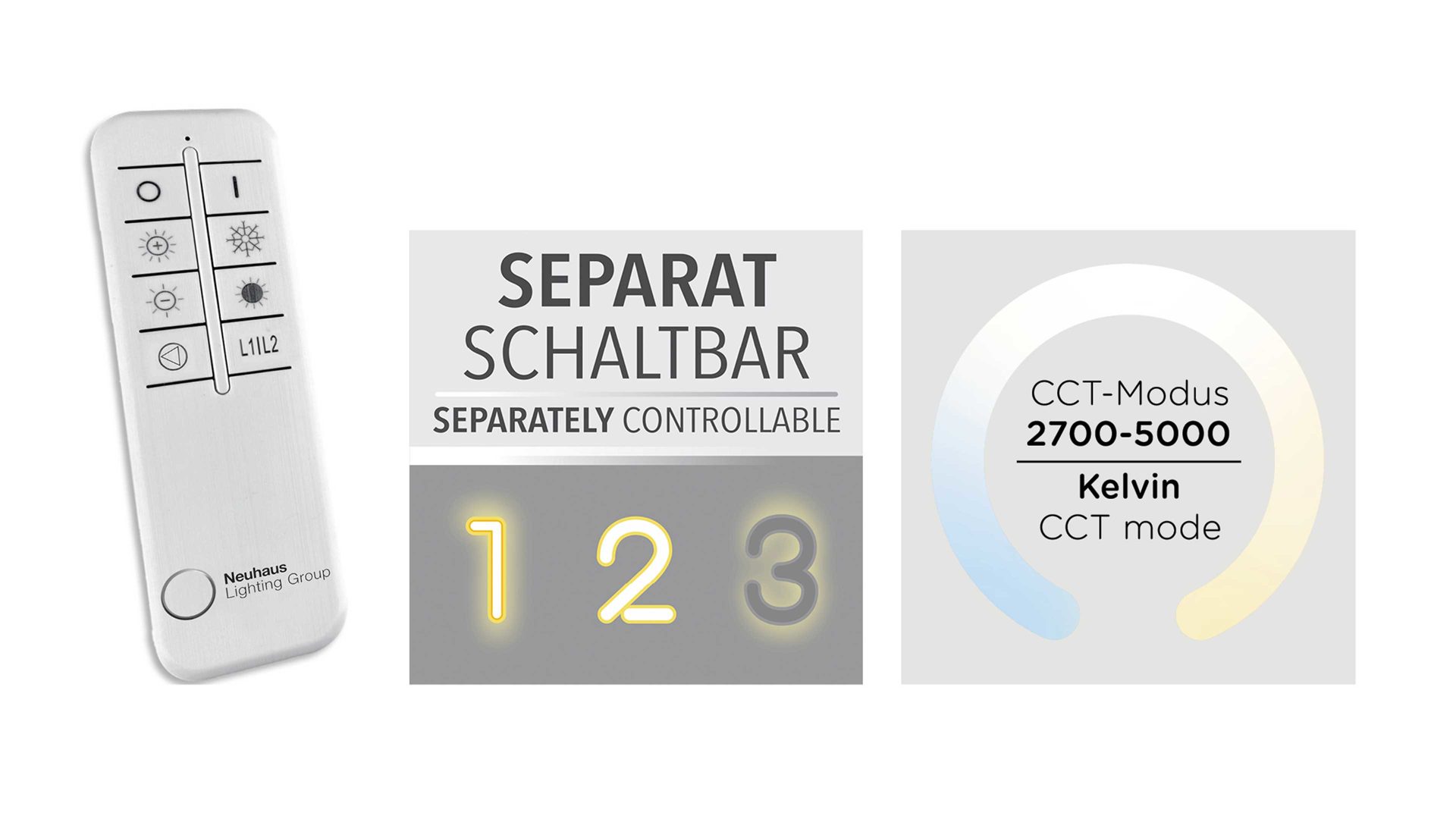 Innen- und Außenring separat steuerbar über Fernbedienung
