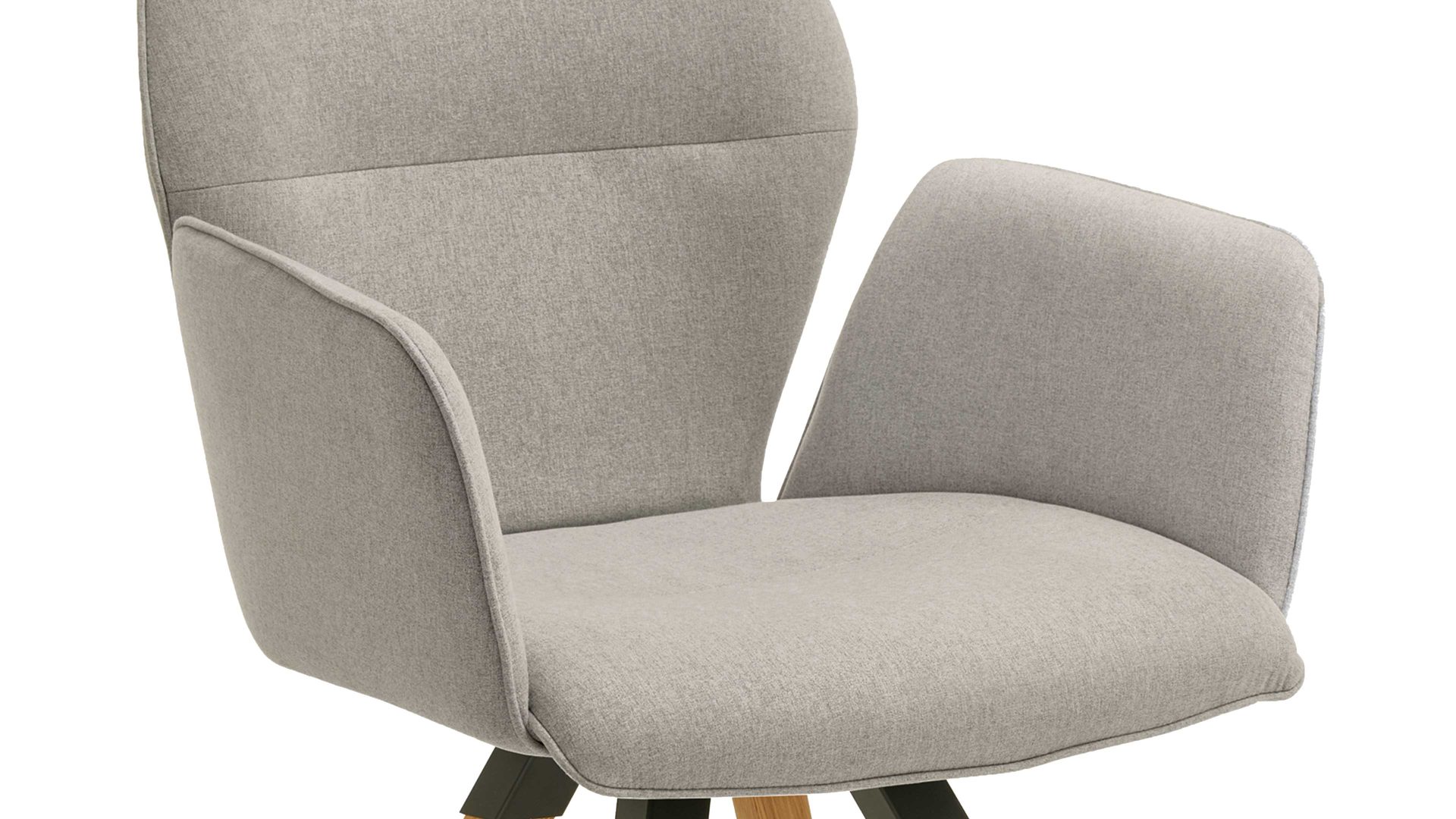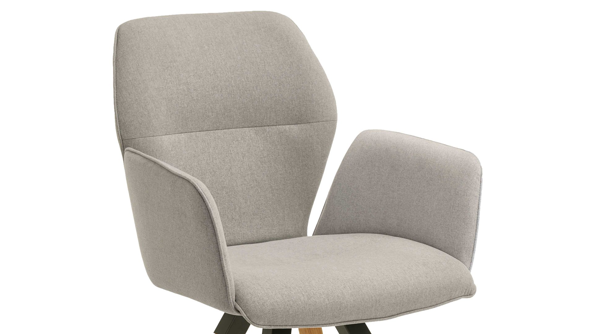 Neben den optischen Vorzügen begeistern auch die funktionalen Merkmale des schicken Designer-Armlehnstuhls. Durch die feine Haptik des Bezugs und die Armlehnen genießen Sie allerhöchsten Sitzkomfort. Darüber hinaus ist der Schalenstuhl um 180 Grad drehbar und mit einer Rückholfunktion ausgestattet. Diese Charakteristika verstärken die an sich schon ausgeprägte Bequemlichkeit, was beispielsweise dann spürbar wird, wenn Sie sich der Person, die am Tisch neben Ihnen sitzt, frontal zuwenden möchten.