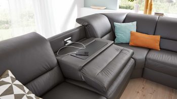 Kombiniert verleihen die wertigen Materialien und perfekt aufeinander abgestimmten Farben der Polsterecke eine moderne und elegante Ausstrahlung.