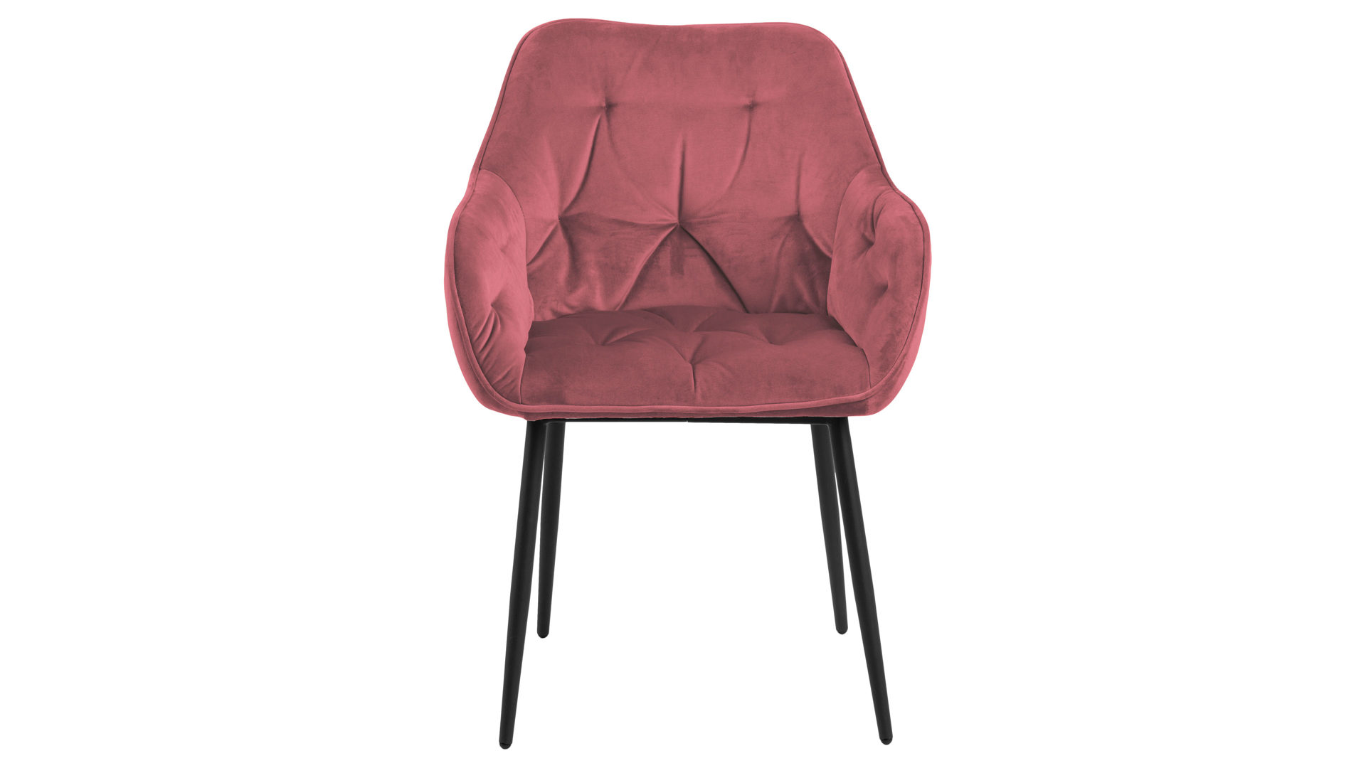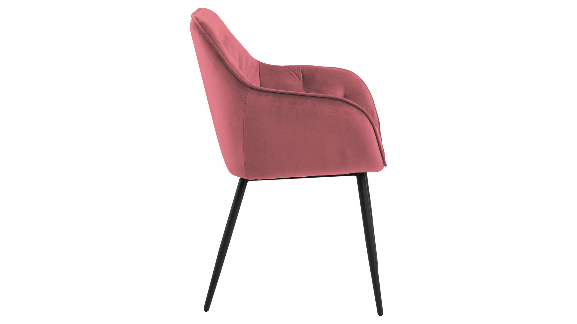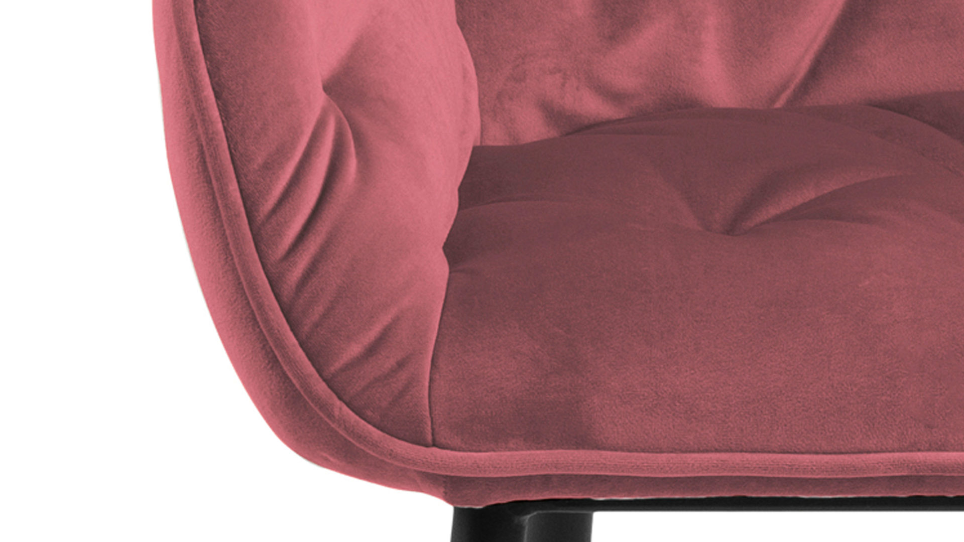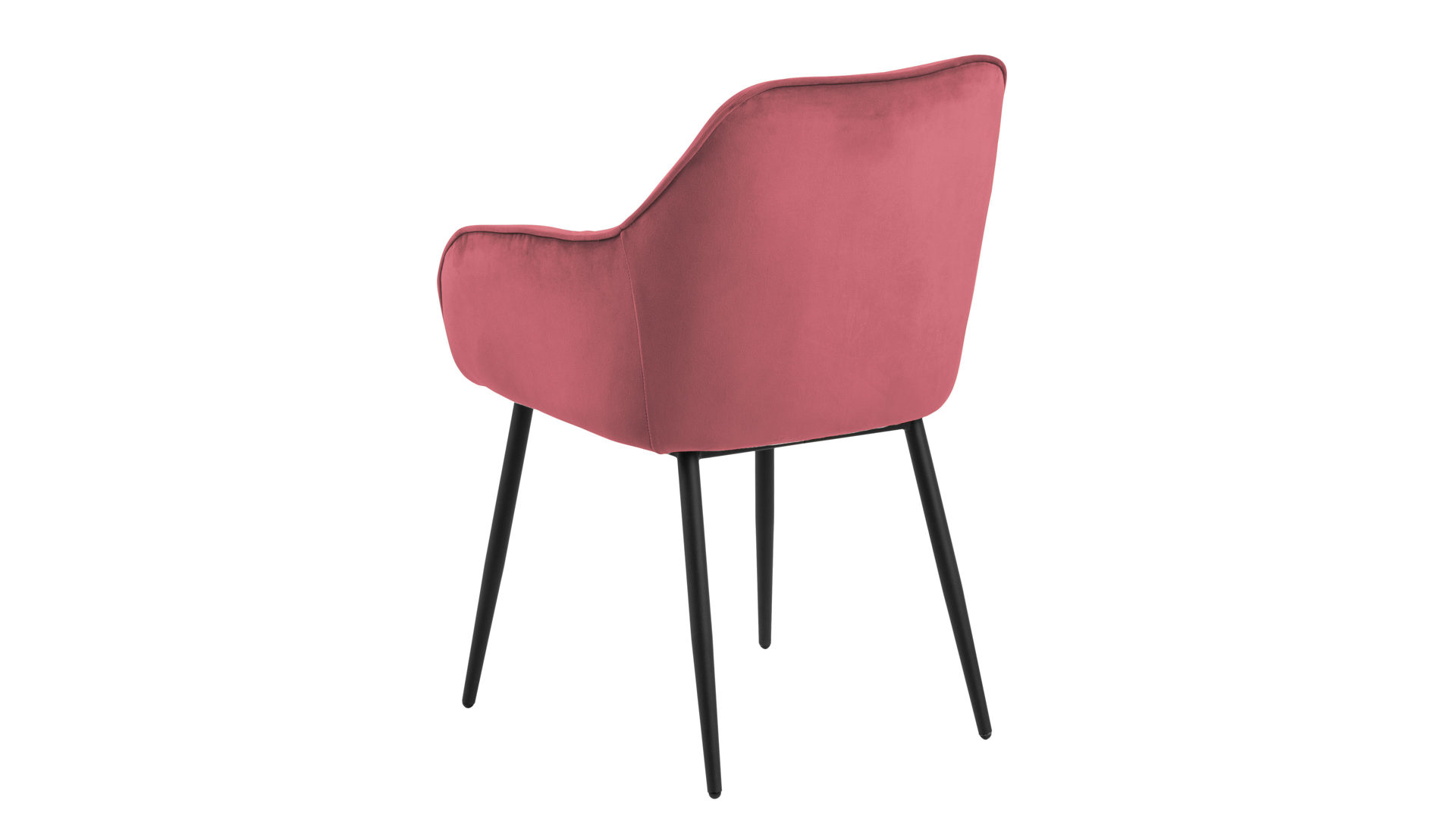Dabei harmoniert der Polsterstuhl in seiner sanften Formensprache mit zahlreichen Einrichtungsstilen. Moderne Geradlinigkeit ergänzt er ebenso stimmig wie den beliebten Vintage-Trend. Auch farblich erlaubt der Esszimmerstuhl Brooke angenehme Freiheit beim Kombinieren: Dafür sorgt der korallenfarbene Bezug aus Samt, der die gesamte Sitzschale inklusive der bequemen Armlehnen weich umhüllt. Die rau pulverbeschichteten Metallfüße fließen in mattem Schwarz stimmig in das Gesamtbild ein.