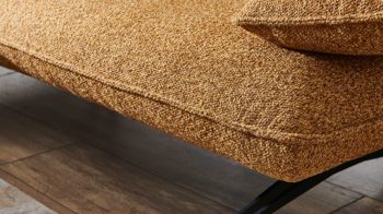 Mit seinen mattschwarzen Metallkufen verleiht es jedem Raum eine moderne und stilvolle Note. Es besteht aus einer schrägen mittelgroßen Liege mit Armteil links und einem mittelgroßen Element Armteil rechts.