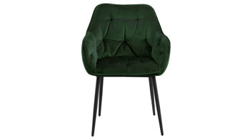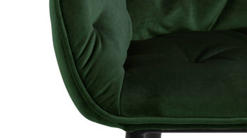Dabei harmoniert der Polsterstuhl in seiner sanften Formensprache mit zahlreichen Einrichtungsstilen. Moderne Geradlinigkeit ergänzt er ebenso stimmig wie den beliebten Vintage-Trend. Auch farblich erlaubt der Esszimmerstuhl Brooke angenehme Freiheit beim Kombinieren: Dafür sorgt der waldgrüne Bezug Vic aus Samt, der die gesamte Sitzschale inklusive der bequemen Armlehnen weich umhüllt. Die rau pulverbeschichteten Metallfüße fließen in mattem Schwarz stimmig in das Gesamtbild ein.