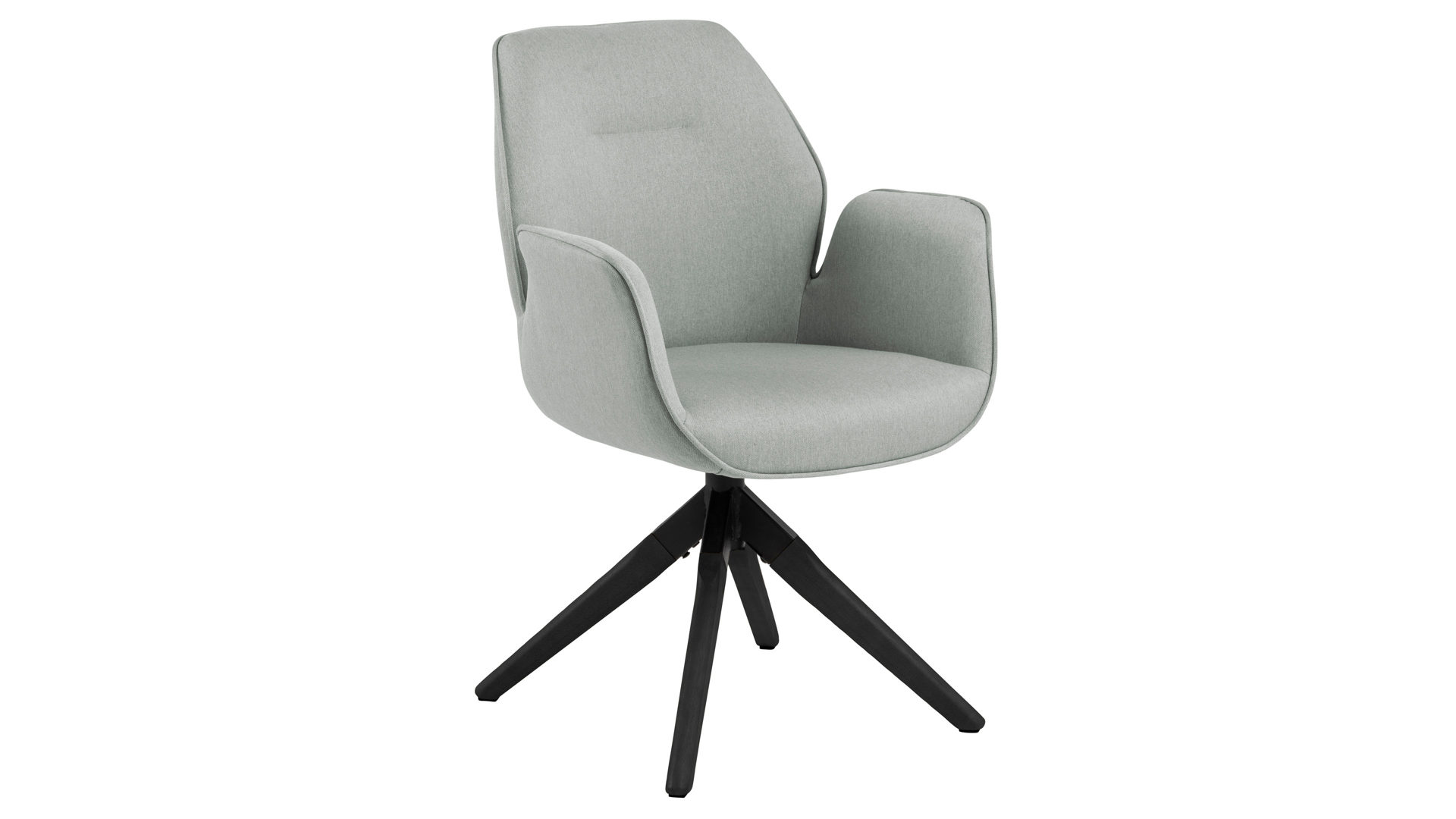 Dabei harmoniert der Armlehnstuhl in seiner sanften Formensprache mit zahlreichen Einrichtungsstilen: Dafür sorgt der hellgraue Stoffbezug Town 13, der die gesamte Sitzschale inklusive der bequemen Armlehnen weich umhüllt. Die schwarz lackierten Holzfüße fließen stimmig in das Gesamtbild ein. Ob als Esszimmerstuhl oder für erholsame Momente im Lounge-Bereich und Wohnzimmer: Das Modell Aura ist der perfekte Allrounder.