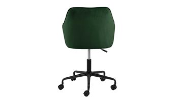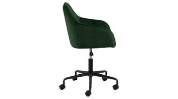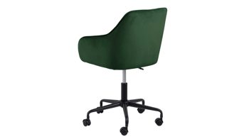Dabei harmoniert der Drehstuhl in seiner sanften Formensprache mit zahlreichen Einrichtungsstilen: Dafür sorgt der waldgrüne Samtbezug, der die gesamte Sitzschale inklusive der bequemen Armlehnen weich umhüllt. Das pulverbeschichtete Metall-Drehkreuz fließt in mattem Schwarz stimmig in das Gesamtbild ein.
