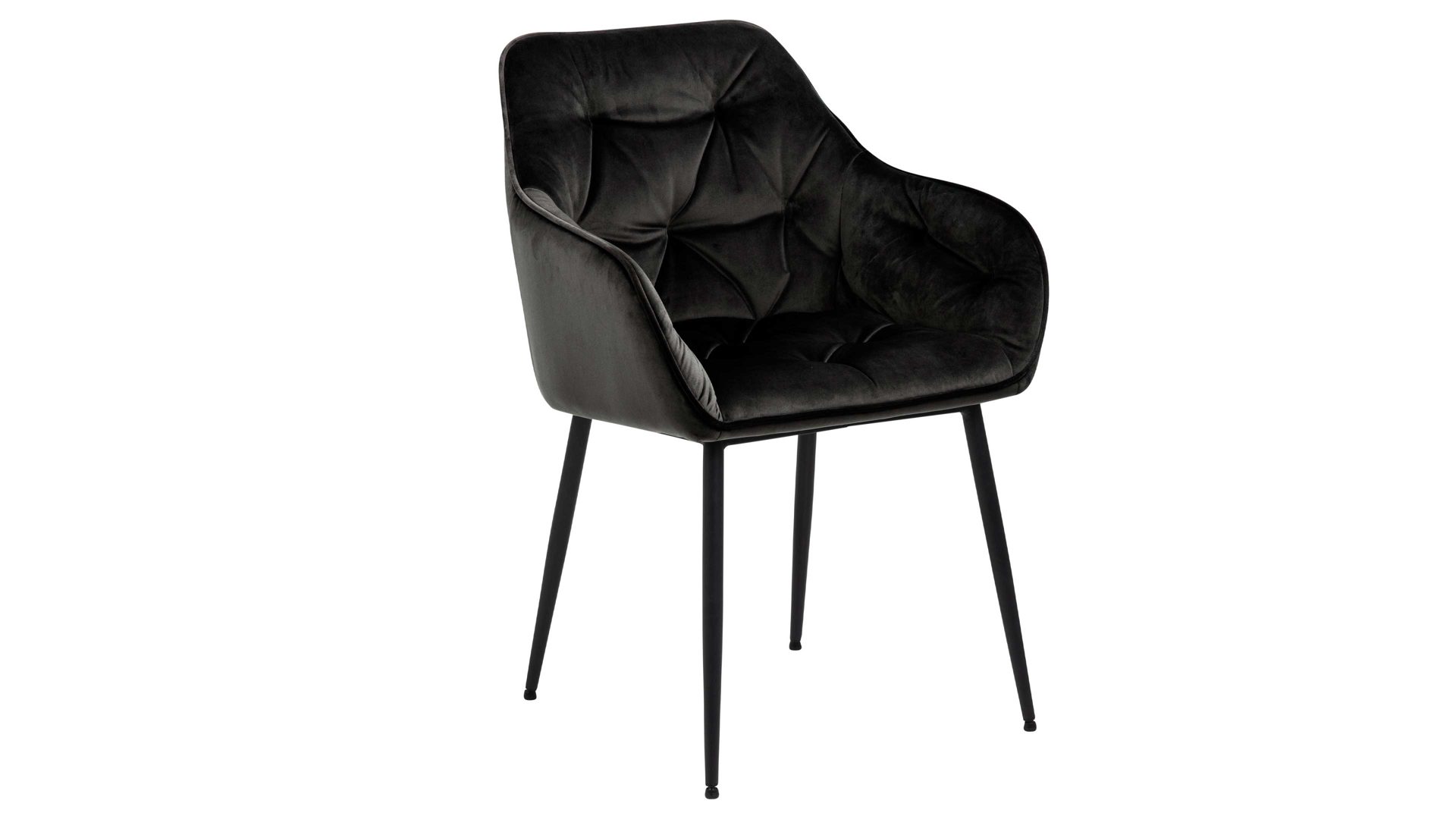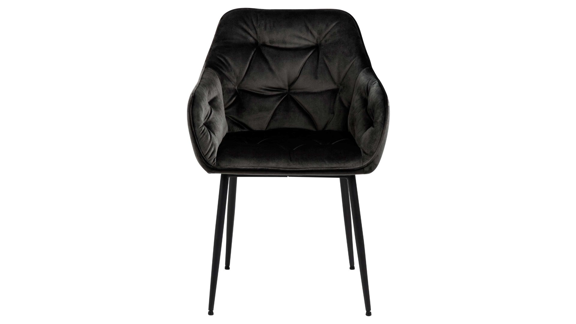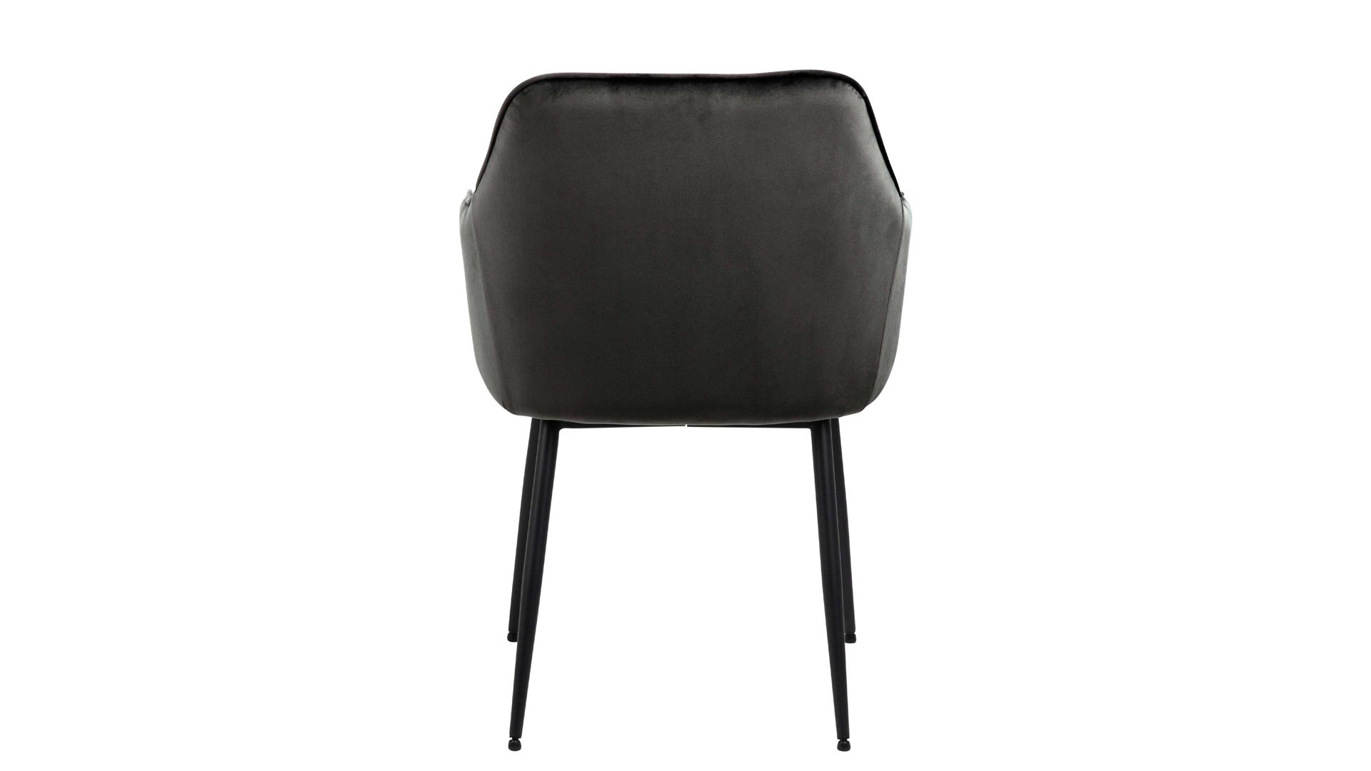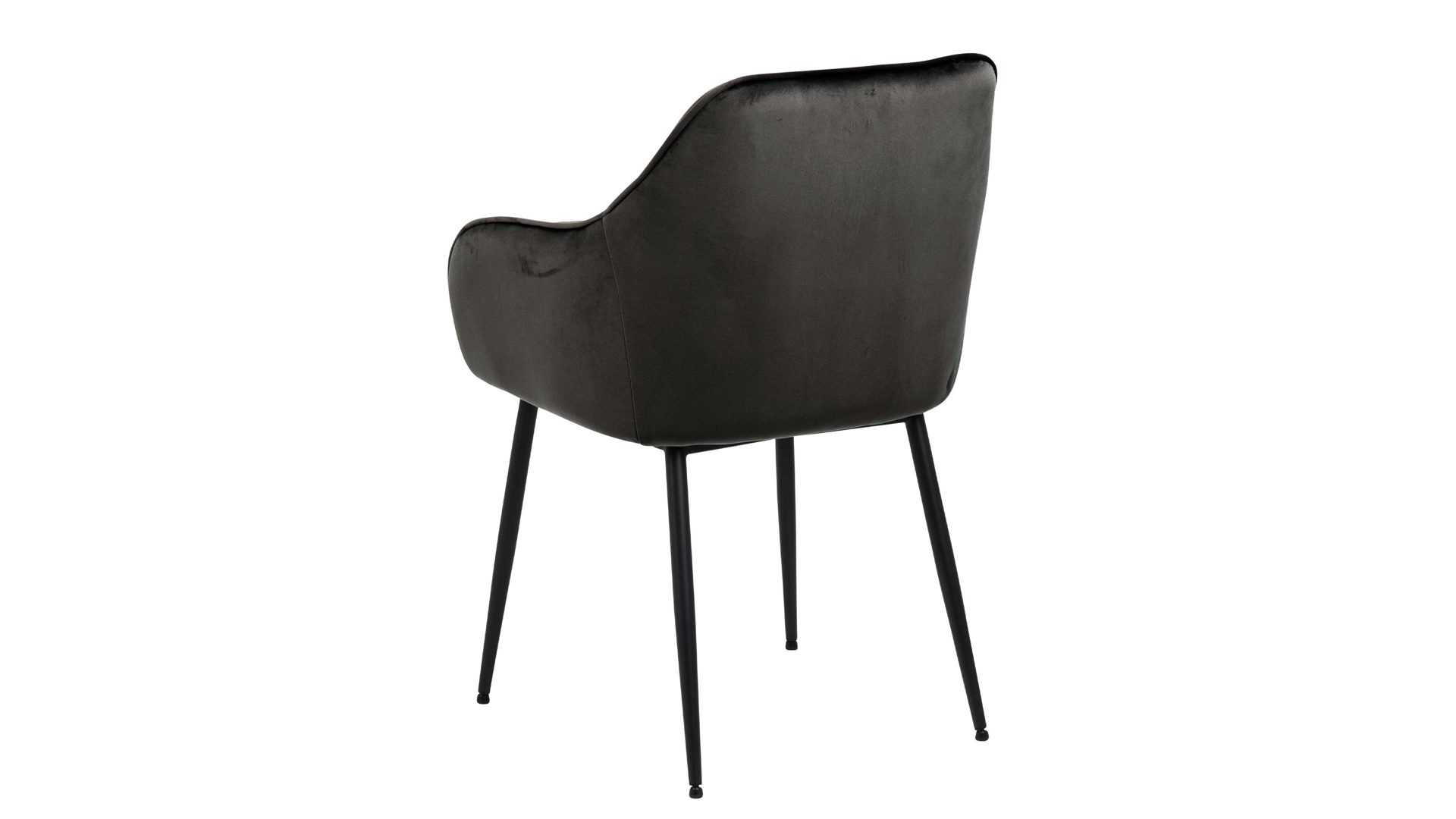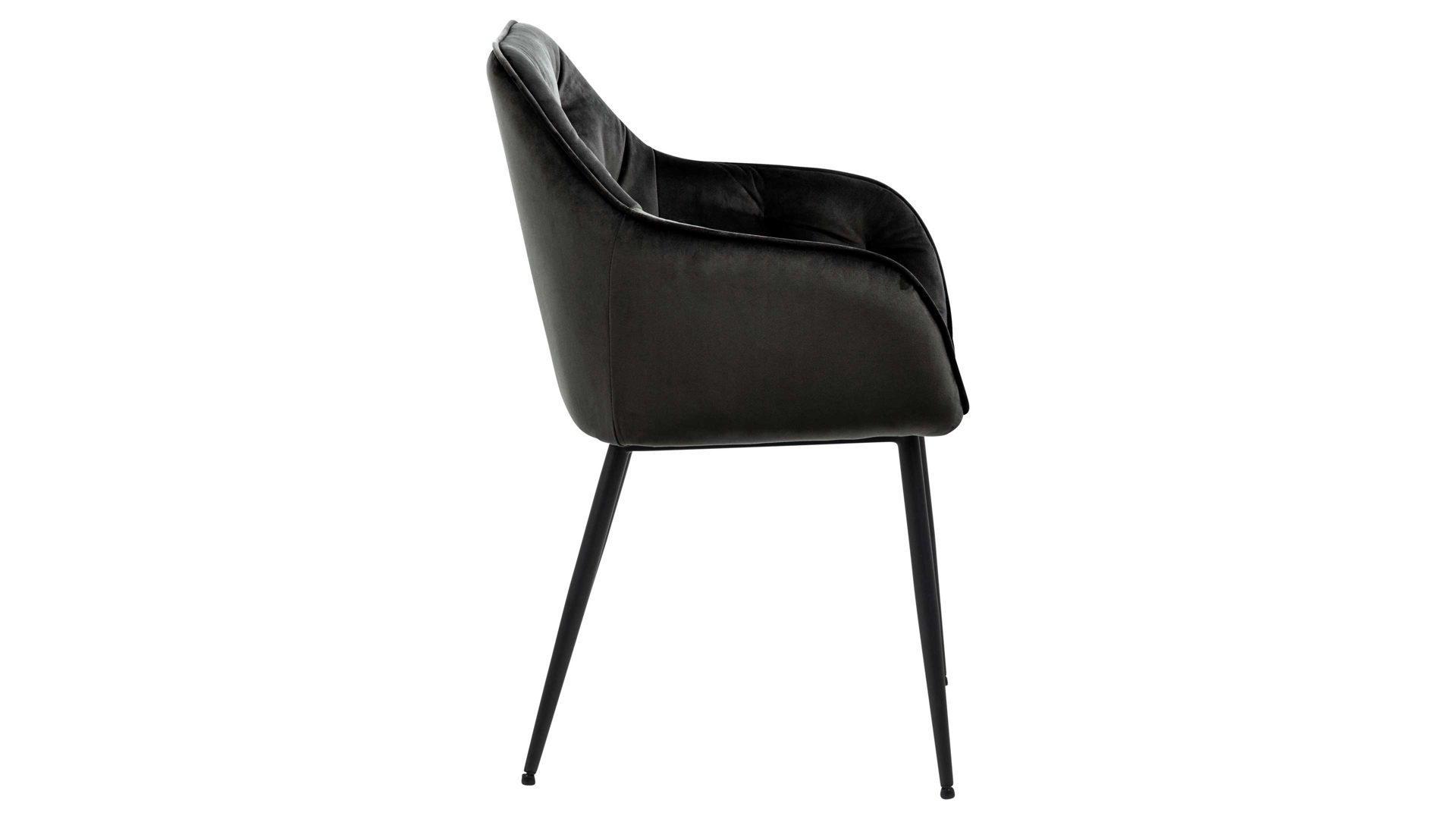 Dabei harmoniert der Polsterstuhl in seiner sanften Formensprache mit zahlreichen Einrichtungsstilen. Moderne Geradlinigkeit ergänzt er ebenso stimmig wie den beliebten Vintage-Trend. Auch farblich erlaubt der Esszimmerstuhl Brooke angenehme Freiheit beim Kombinieren: Dafür sorgt der graubraune Bezug aus Samt, der die gesamte Sitzschale inklusive der bequemen Armlehnen weich umhüllt. Die rau pulverbeschichteten Metallfüße fließen in mattem Schwarz stimmig in das Gesamtbild ein.