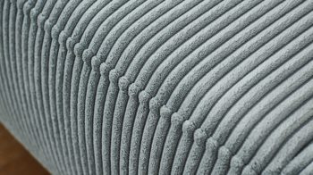 grauer Breitcordbezug und mattschwarz pulverbeschichtete Metallfüße