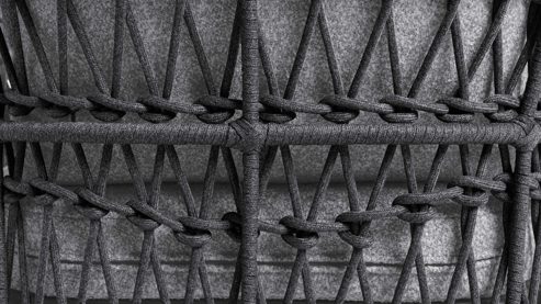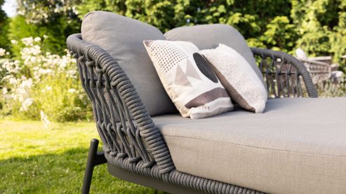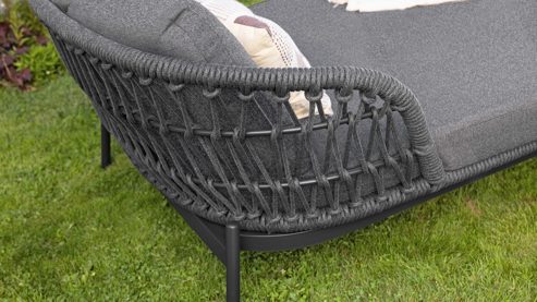 grauer Olefin-Teddybezug, anthrazitfarbene Rope-Bespannung und anthrazitfarbenes Aluminium