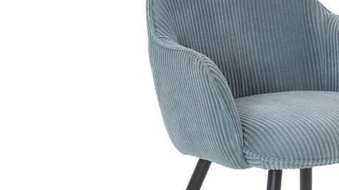 hellblauer Breitcordbezug und schwarz pulverbeschichtete Metallfüße