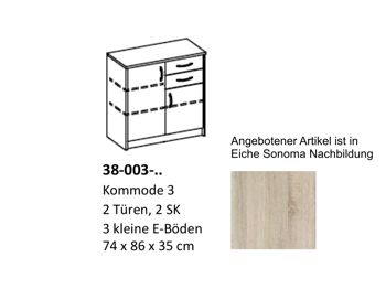Zudem überzeugen die praktischen Maße. Mit ca. 74 x 86 x 35 cm (BxHxT) ist der Kommodenschrank ein kleines Raumwunder.