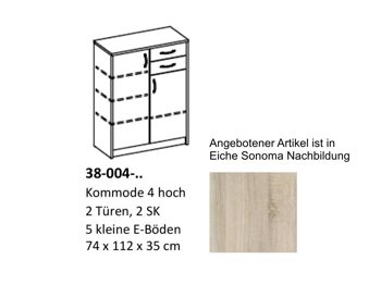 Zudem überzeugen die praktischen Maße. Mit ca. 74 x 112 x 35 cm (BxHxT) ist der Kommodenschrank ein kleines Raumwunder.