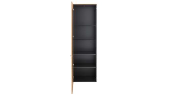Zu der Wohnkombination gehört die eintürige Vitrine Z11-2L. Hinter grauem Parsolglas bieten je zwei Glas- und zwei Holzböden viel Raum für Dekoration. Die Vitrine misst ca. 60 x 197 x 41 cm (BxHxT).