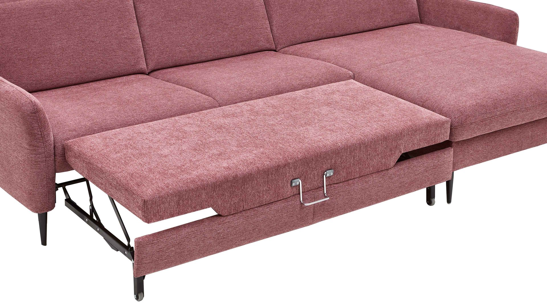 So geht's: Ziehen Sie die Sitzfläche mit dem verchromten Metallgriff nach vorn und leicht nach oben zur Liegefläche aus. Durch den hochwertigen Drellbezug und die softe Kaltschaumpolsterung auf einer stützenden Wellenunterfederung bietet die Querschläferfunktion hohen Liegekomfort.