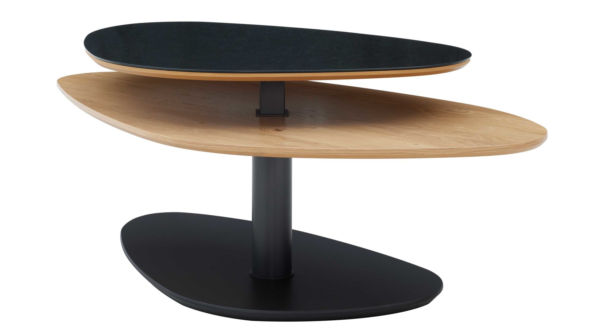 Auch technisch überzeugt der Tisch mit cleveren Features. Die obere Tischplatte lässt sich dank Slice-Diagonalverschiebung flexibel positionieren – ideal, um Getränke, Zeitschriften oder Snacks immer griffbereit zu haben. Mit der Hydro-Lift-Mechanik kannst du die Höhe stufenlos um ca. 18 cm verstellen und so die Tischhöhe individuell anpassen – perfekt für gemütliche Abende oder spontane Snacks am Sofa.
