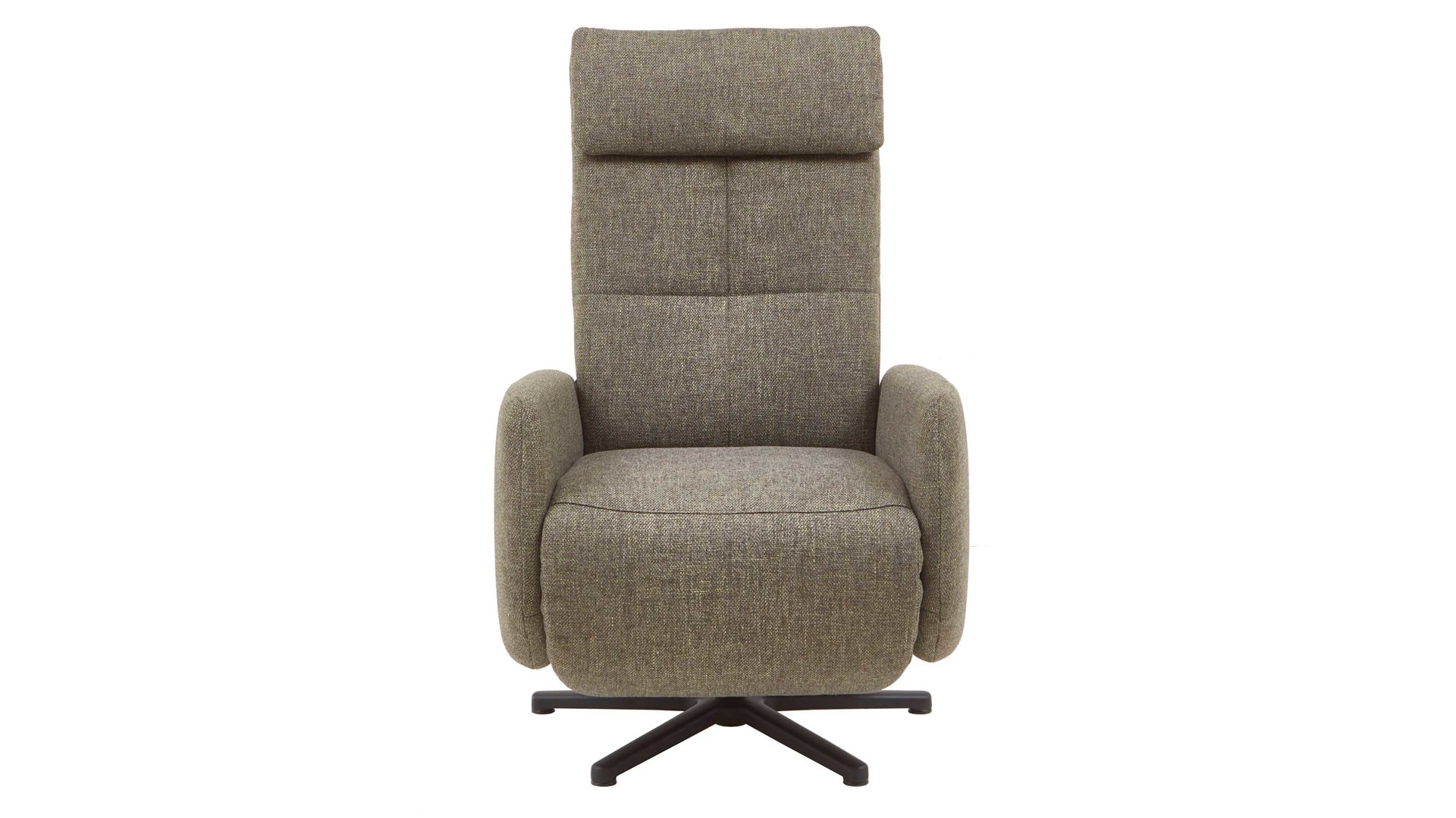 Dieser Relax-Drehsessel aus dem Polsterprogramm New Jersey zeichnet sich durch seine moderne und gemütliche Ausstrahlung, eine exzellente Material- und Verarbeitungsqualität sowie extra hohen Sitzkomfort aus. Der trendige und spezielle olivfarbene Stoffbezug sorgt für ein edles Design. Ein mattschwarzer Metall-Sternfuß rundet die Optik stimmig ab und trägt überdies zur Stabilität des attraktiven TV-Sessels bei. Einen gelungenen Akzent setzt die gesteppte Rückenlehne. Die Sitzfläche ist glatt bezogen.