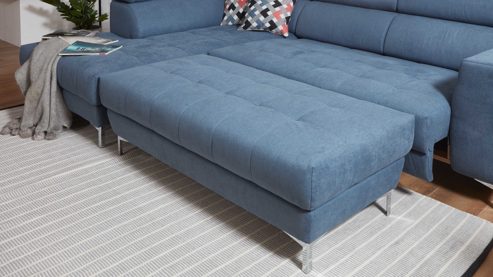 Ein Highlight des Programms 7567 sind die drei verschiedenen Sitzqualitäten: Polyätherschaum, Polyätherschaum mit Kaltschaum weich oder Kaltschaum. Sie haben die Wahl, welche Sitzqualität am besten zu Ihnen passt. Des Weiteren können Sie zwischen zwei Fußfarben wählen und die Polsterecke ist standardmäßig mit einer Kopfteilverstellung ausgestattet. Optional ist auch eine motorische Vorziehfunktion mit Einbauschalter erhältlich. Dabei haben Sie die Wahl zwischen chrom oder schwarz, bei Zweisitzern mit Armteil ist sogar ein USB-Anschluss integriert.