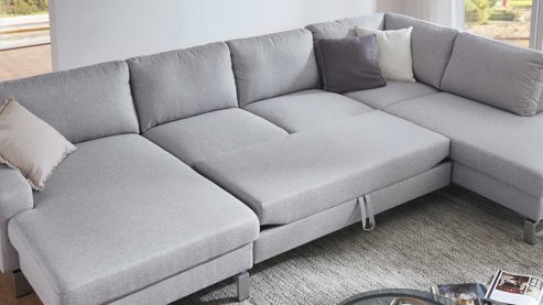 Sitzfläche mit bequemer PUR-Schaumpolsterung im Sandwichaufbau auf Wellenunterfederung