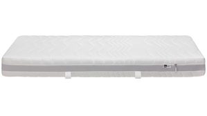 Der Matratzenbezug besteht aus einem hochwertigen Lyocell-Jersey, ist mit 400 g/m² Hygienevlies versteppt und dadurch besonders atmungsaktiv. Er lässt sich dank umlaufendem Reißverschluss komplett abnehmen und bei bis zu 60 Grad waschen – ideal für alle, die auf Hygiene achten. Ein umlaufendes Klimaband unterstützt zusätzlich die Luftzirkulation im Matratzenkern und sorgt für ein angenehm trockenes Schlafgefühl.