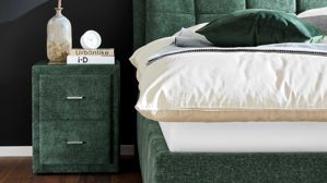 Kombiniere die Nachtkommode idealerweise mit dem passenden Polsterbett der Serie, um ein stimmiges Gesamtbild zu erzielen.