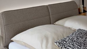 Im Mittelpunkt steht das elegante Bettgestell mit einer Liegefläche von ca. 180 x 200 cm (BxL). Das stilvolle Kopfteil mit gepolstertem Kopfteil und einem Bezug aus grobem Webstoff sorgt für eine besonders hochwertige Optik und setzt einen natürlichen Akzent im Raum.