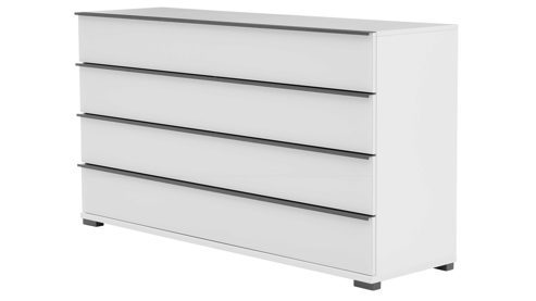 Modern, praktisch, hochwertig: Die Schubladenkommode aus der Interliving Schlafzimmer Serie 1033 verbindet ein klares, zeitgemäßes Design mit komfortabler Funktionalität. Der weiße Korpus, hochwertige Glasfronten in Weiß und schieferfarbene Griffleisten schaffen eine elegante Optik, die sich harmonisch in jedes moderne Schlafzimmerambiente einfügt.