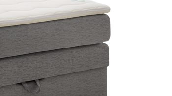 Praktischerweise können Sie den Bezug des Toppers abnehmen und bei bis zu 60 Grad Celsius in der Maschine waschen. Die Liegehöhe mit Topper beläuft sich auf ca. 64 cm. Funktionale Highlights sind die Doppelfederung, die eine optimale Körperanpassung und Druckentlastung gewährleistet, sowie der belüftete Bettkasten mit Gasdruckfedern, der innen weiß beschichtet ist.