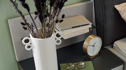 Kombinieren Sie das Paneel 30426 mit einem passenden Bettgestell der Interliving Schlafzimmer Serie 1207 und nutzen Sie die optional erhältliche Innenausstattung Ihrer Schränke für noch mehr Ordnung. Die rechtsseitige Montage eignet sich ideal für Räume, in denen Sie funktionale Ergänzungen nur auf einer Seite des Bettes benötigen.