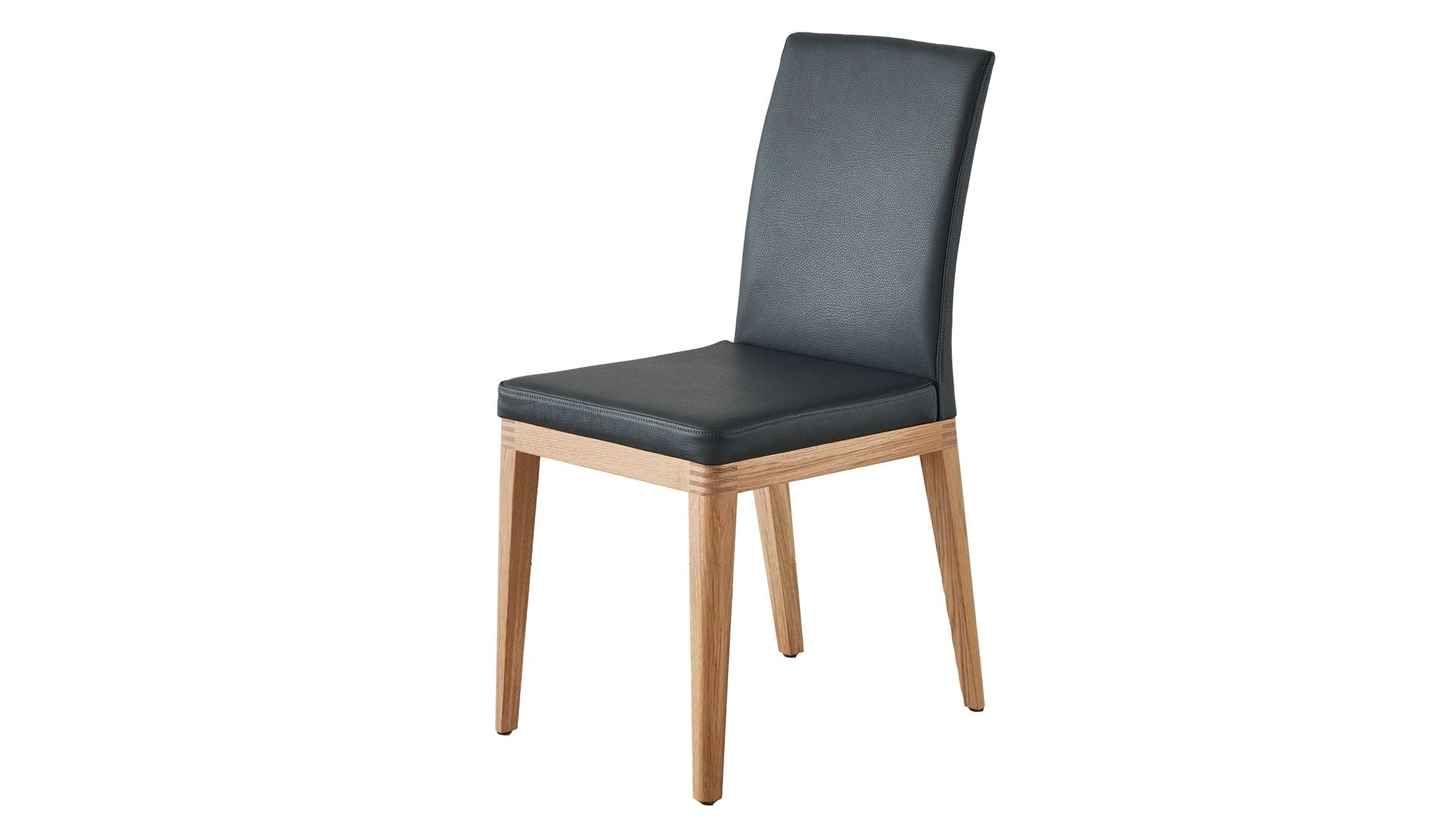 Der Esszimmerstuhl 102445 aus dem erstklassigen Wohn- und Esszimmerprogramm Nevada verbindet ein massives, biancofarben geöltes und gebürstetes Eichegestell mit einem anthrazitfarbenen Lederbezug. Er begeistert mit seiner Natürlichkeit, der hochwertigen Realisierung sowie dem verzahnten Rahmen und modernen Design.
