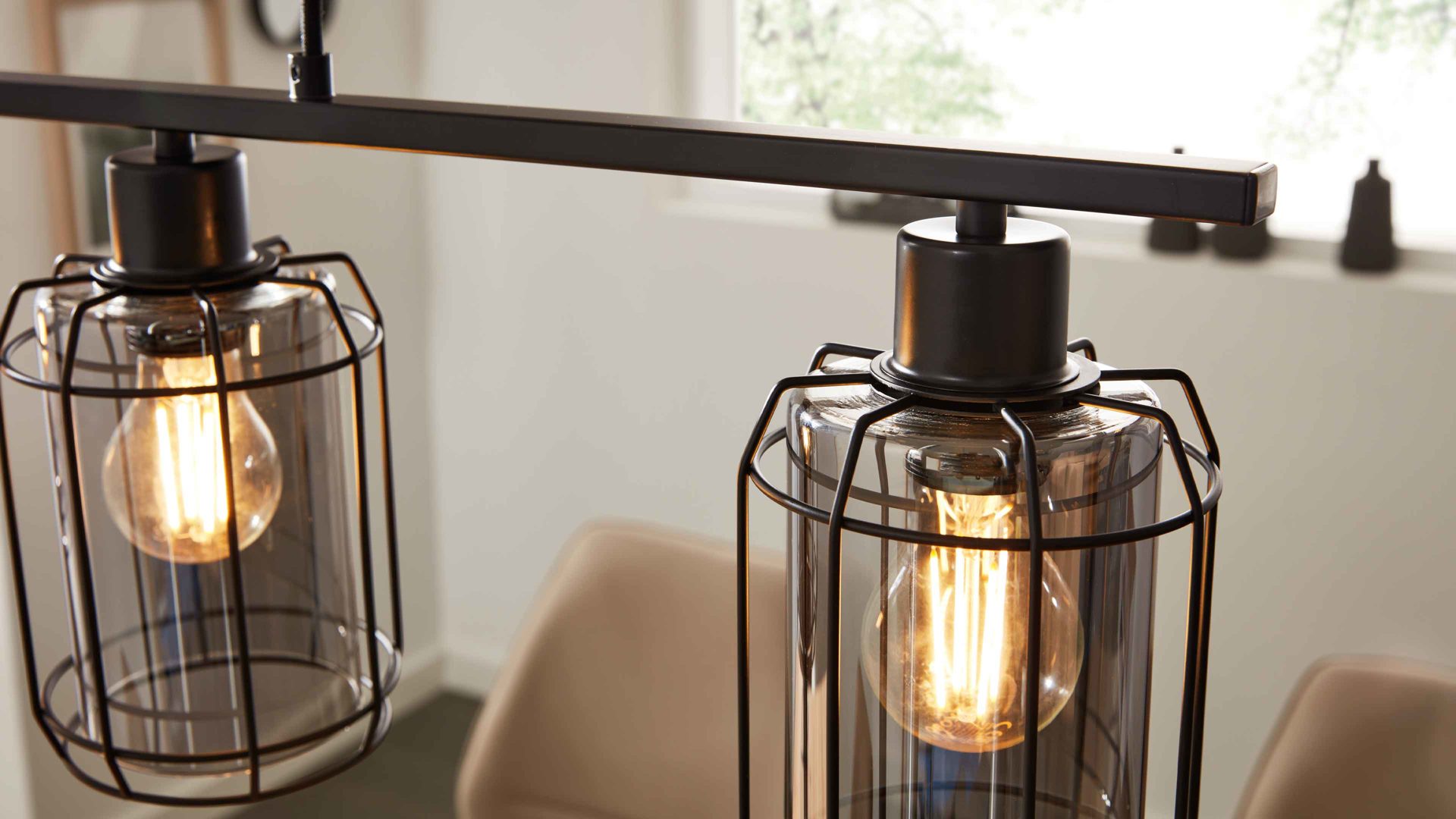 Mit ihrer Basis aus klassisch mattschwarzem Metall und den drei Lampenschirmen aus rauchfarbenem Glas vereint die Hängelampe aus der Interliving Leuchten Serie 9331 modernen Stil mit einem Hauch von Retro-Flair. Der angesagte Industrial-Look bringt Charakter in dein Zuhause und sorgt für ein stimmungsvolles Ambiente – perfekt für alle, die Design mit Atmosphäre lieben.