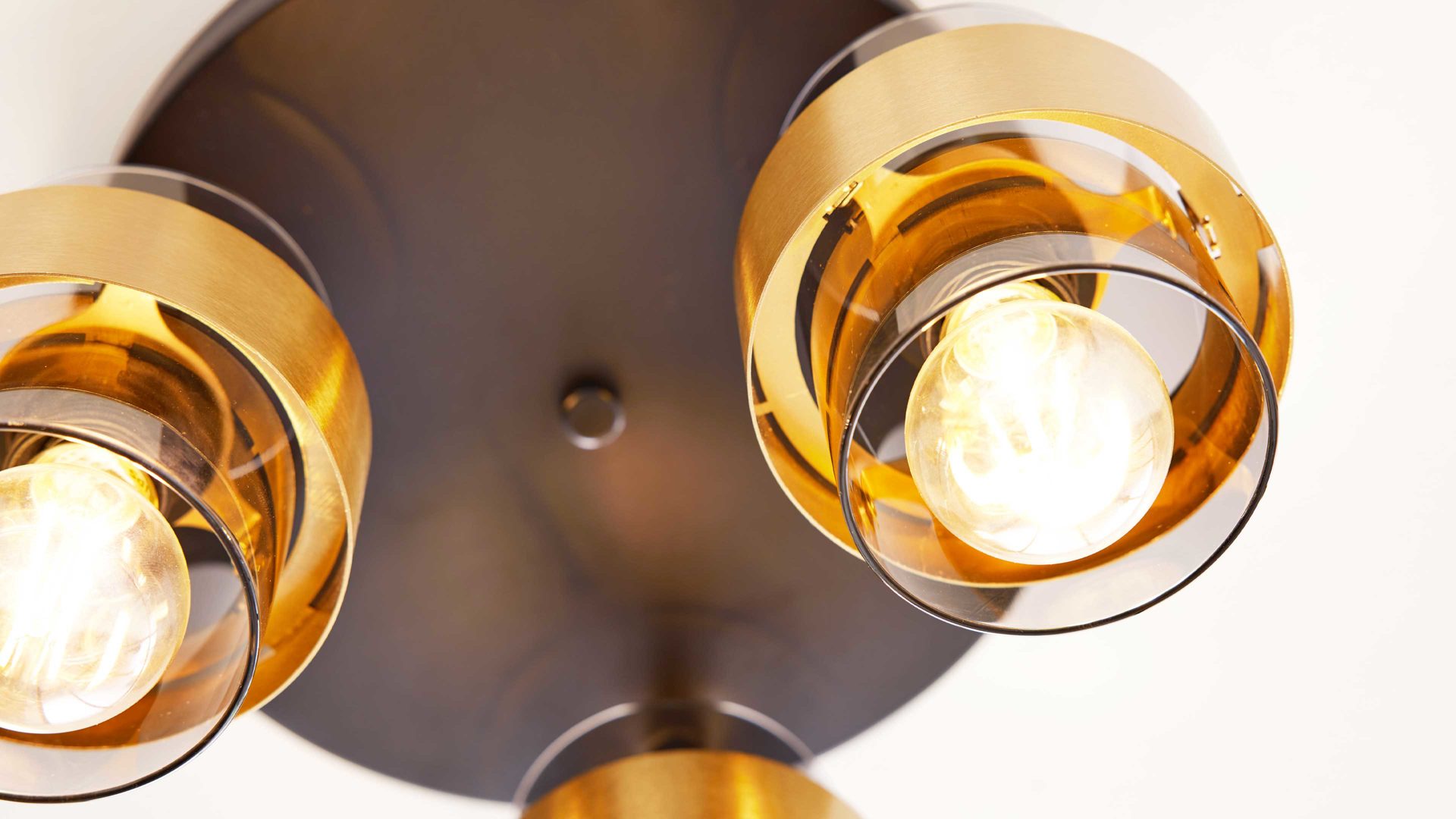 Die Deckenleuchte ist für drei Leuchtmittel mit E27-Fassung und einer jeweiligen Leistung von bis zu 60 Watt ausgelegt. Da die Leuchtmittel nicht im Lieferumfang enthalten sind, kannst du die Lichtfarbe und Intensität ganz nach deinen Vorstellungen wählen. Bedient wird die Leuchte bequem über den Wand-Lichtschalter.