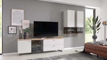 Die Wohnwand 780008 aus der Interliving Wohnzimmer-Serie 2108 verbindet modernen Charme mit einer eleganten Note.