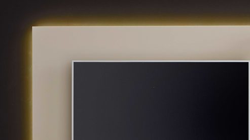 Die TV-Rückwand ist für Geräte bis 75 Zoll geeignet und hat eine Größe von ca. 180 x 122 cm (B/LxH). Sie bildet den zentralen Bereich deiner Wohnlösung.