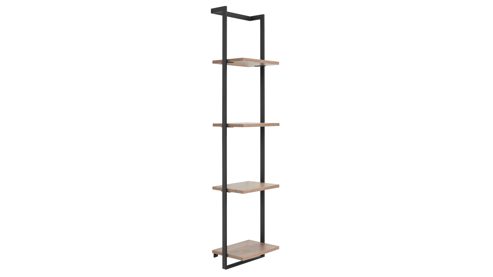 Für zusätzlichen Stauraum und dekorative Akzente sorgen zwei stilvolle Regale mit mattschwarz pulverbeschichtetem Stahlrahmen und Böden in Vikings Oak Nachbildung. Das große Regal (Typ 49457-010-205) verfügt über vier feste Böden mit jeweils ca. 28 x 1,6 x 21 cm (B/LxHxT) und misst insgesamt ca. 30 x 130 x 28 cm (BxHxT). Das kleinere Regal (Typ 49455-010-205) bietet drei feste Böden in denselben Maßen und misst ca. 30 x 72 x 28 cm (BxHxT). Beide Regale ergänzen das Badezimmermöbel-Set perfekt und bringen Leichtigkeit und Struktur ins Bad.