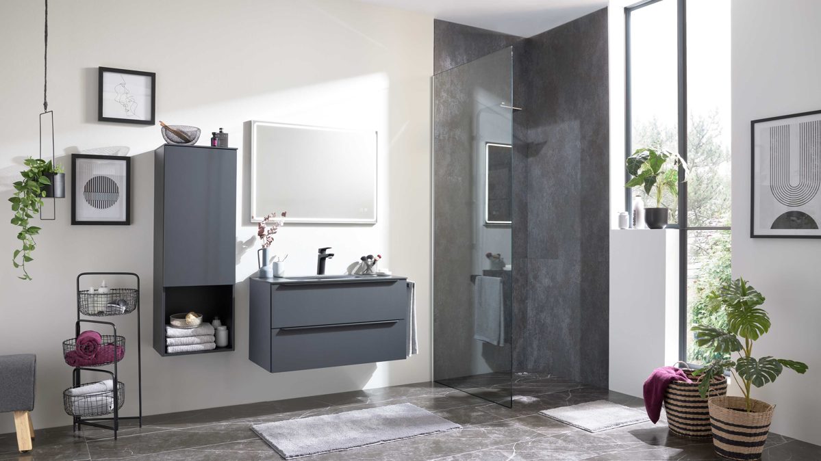 Interliving Bad Serie 7945 – Badmöbel-Set in edlem Graphitschwarz