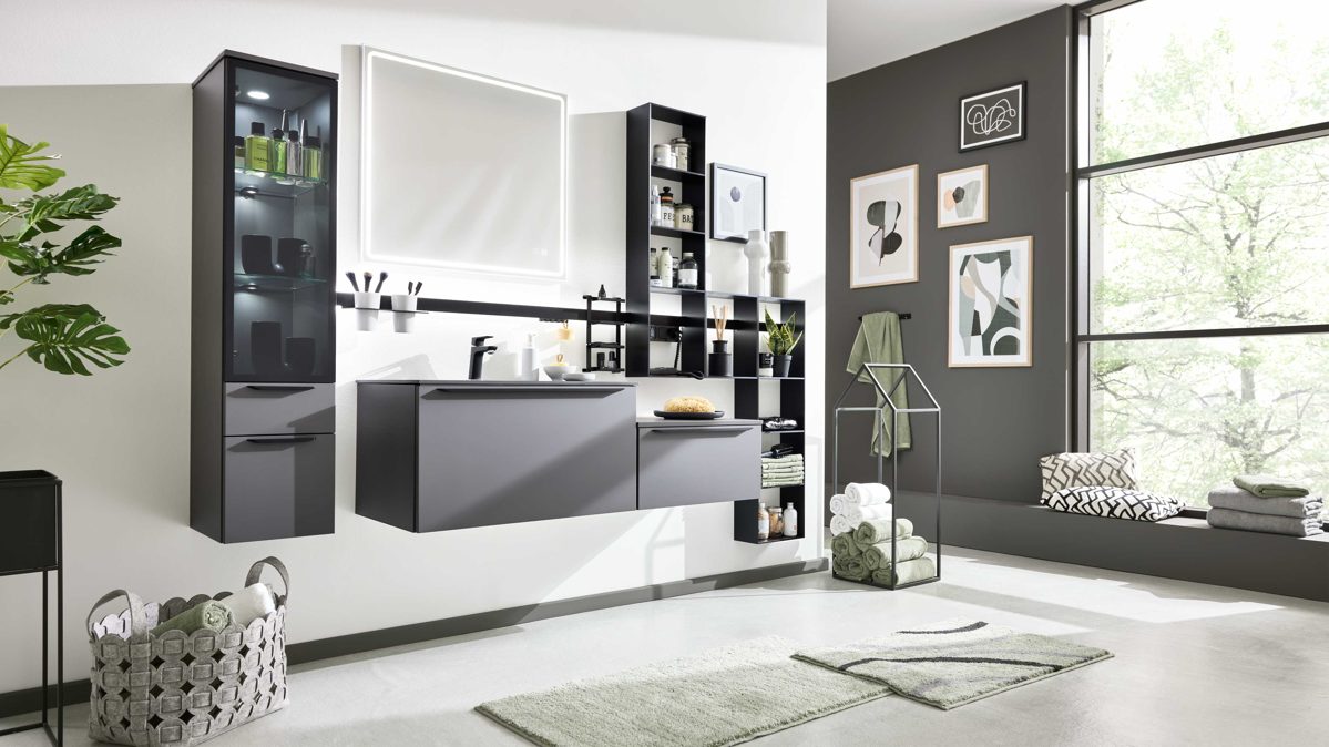 Das Badmöbel-Set aus der Interliving Bad Serie 7317 kombiniert elegantes Design, clevere Funktionen und hochwertige Verarbeitung zu einem harmonischen Gesamtpaket. In mattem Schiefergrau mit mattschwarzen Metall-Griffleisten überzeugt die Serie durch zeitlose Modernität und fügt sich perfekt in unterschiedliche Badkonzepte ein. Alle Möbel und Ergänzungen sind individuell planbar, werden nachhaltig in Deutschland produziert und sind mit 5 Jahren Herstellergarantie ausgestattet.